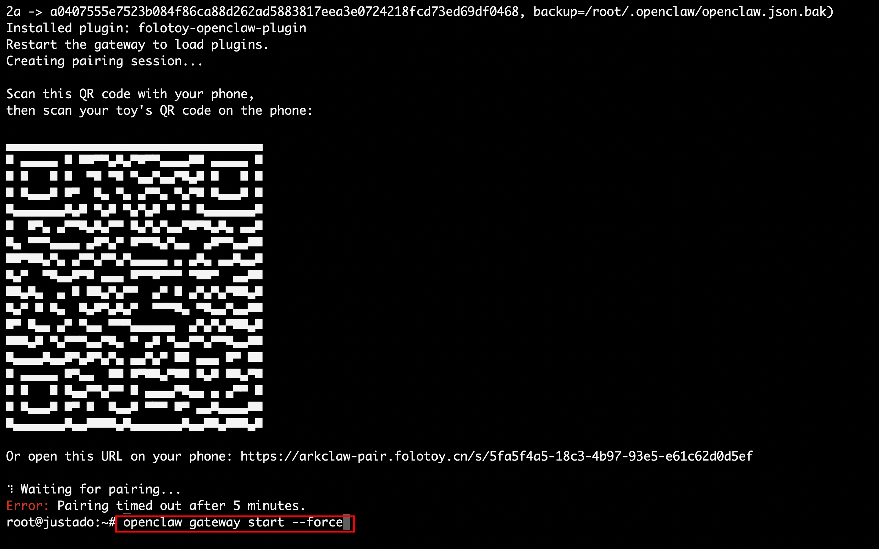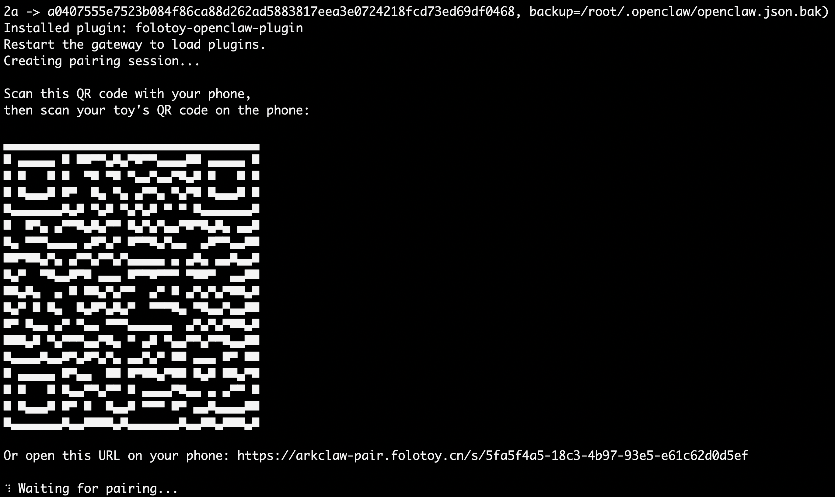 The QR code is valid for 5 minutes. Please complete the binding within 5 minutes. If the QR code expires, rerun the installation command above.